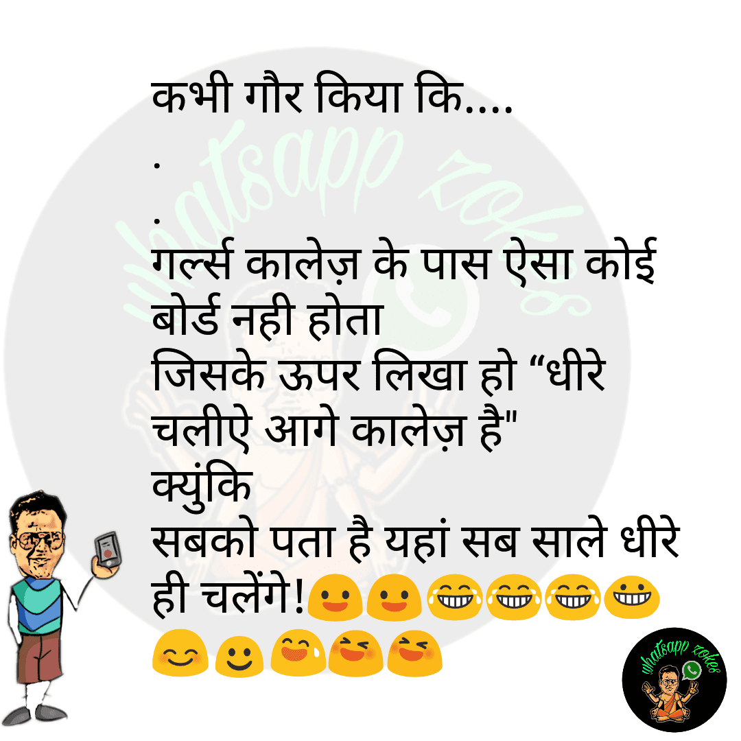 Whatsappzokesकभी गौर किया कि गर्ल्स कालेज़ के पासPosted on January 6, 2018October 11, 2023zokeswhatsappCommentकभी गौर किया कि…. . . गर्ल्स कालेज़ के पास ऐसा कोई बोर्ड नही होता जिसके ऊपर लिखा हो “धीरे चलीऐ आगे कालेज़ है” क्युंकि सबको पता है यहां सब साले धीरे ही चलेंगे!😃😃😂😂😂😀😊☺😅😆😆 Post Views: 588