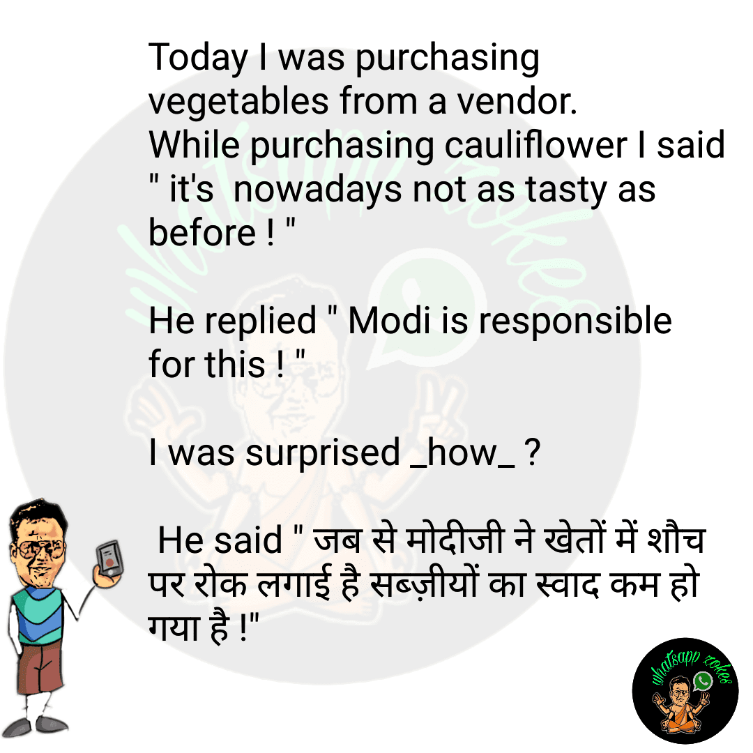 He said ” जब से मोदीजी ने खेतों में शौच पर रोक लगाई है सब्ज़ीयों का स्वाद कम हो गया है !”